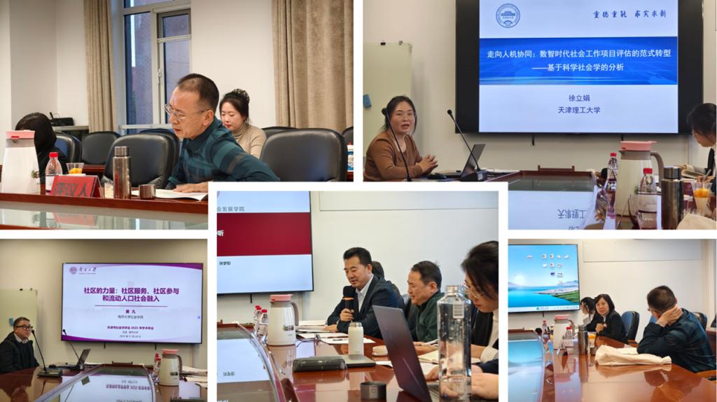 朱婷钰副教授、于佳煖博士,天津理工大学刘振副教授、硕士研究生庞淑睿、周晴、张怡、韩越,天津师范大学研究生董亚楠、张淑婷等,围绕人工智能伦理、生育意愿、贫困治理等议题展开研讨。