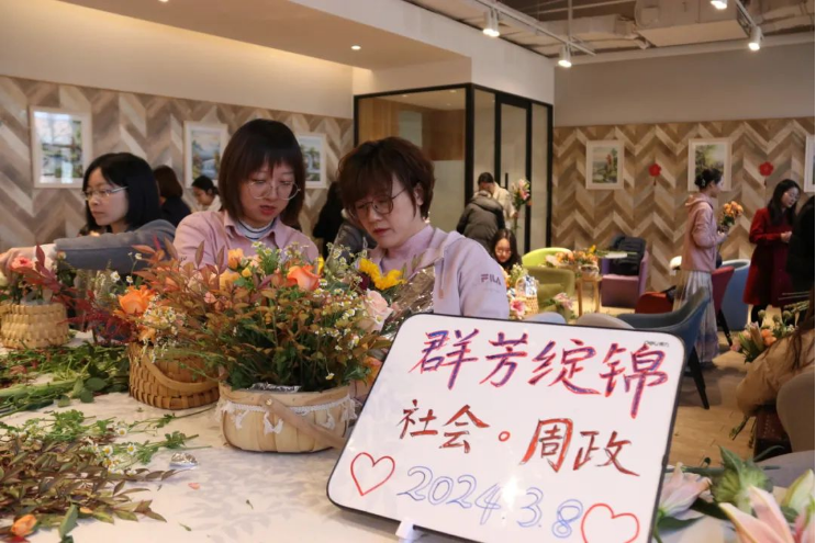 和周恩来政府管理学院工会联合举办了的“群芳绽锦”花艺美育活动。两院女教工和女同学在花香弥漫中同庆节日、共品艺术,畅聊收获、感悟生活,陶冶情趣、舒缓压力。