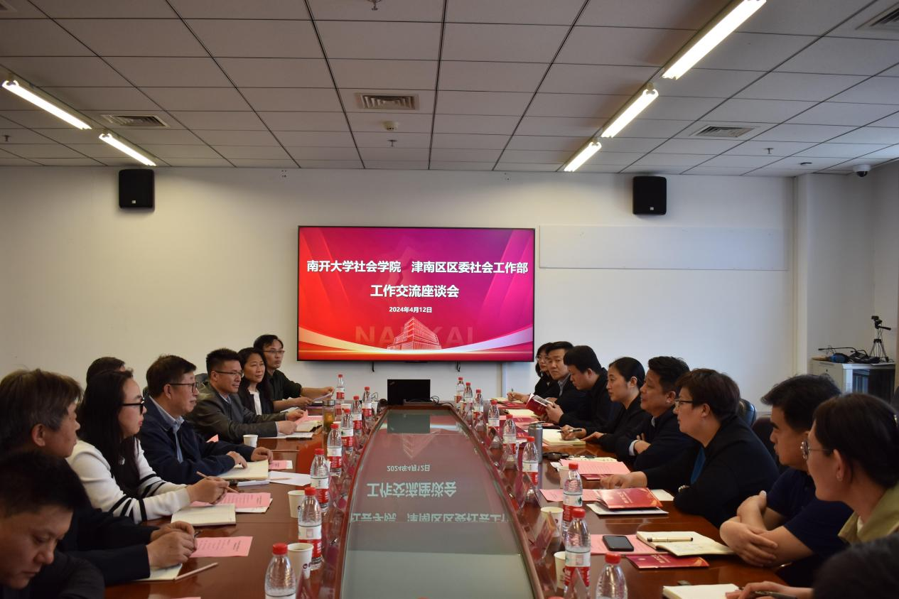 ,开展工作交流,洽谈合作。院长张文宏,副院长赵万里、张宏伟出席。津南区委社会工作部相关职能科室负责人,污漫