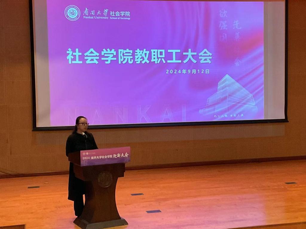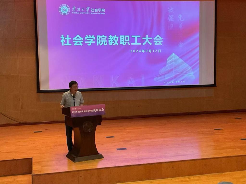 在大通学生中心小音乐厅举办教职工大会。院领导张文宏、宋媛、赵万里、张宏伟、姜斯琪。学院各系所中心、各行政办公室教师参加,共同迎接新学年的到来。大会由副院长张宏伟主持。