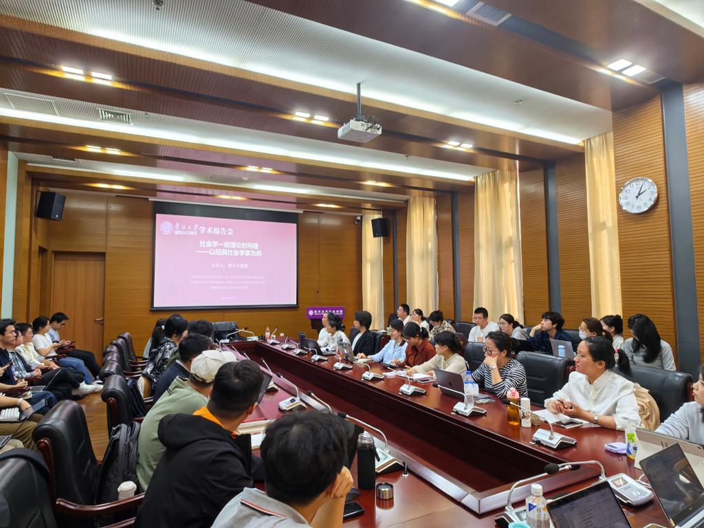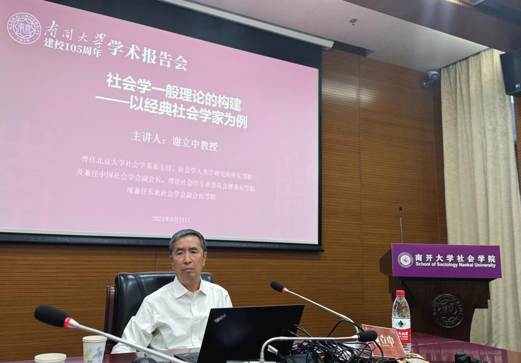 建校105周年的学术报告会。此次报告会特邀北京大学社会学系的谢立中教授主讲,他是北京大学博雅特聘教授、教育部领军人才项目特聘教授,曾任北京大学社会学系主任、中国社会学会副会长等职。谢教授以“社会学一般理论的构建——以经典社会学家为例”为题,为师生们呈现了一场精彩的学术讲座。报告会由污漫