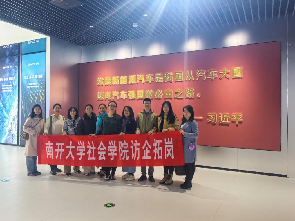 2003级校友任茜的积极牵线搭桥下,学院师生、校友一同走进了比亚迪迪空间|天津馆,开展了一场别开生面的访企拓岗及亲子游学活动。此次活动旨在深化校企合作,拓宽学生就业渠道,加强师生、校友互动链接,让师生、校友近距离感受新能源汽车行业的魅力与未来。