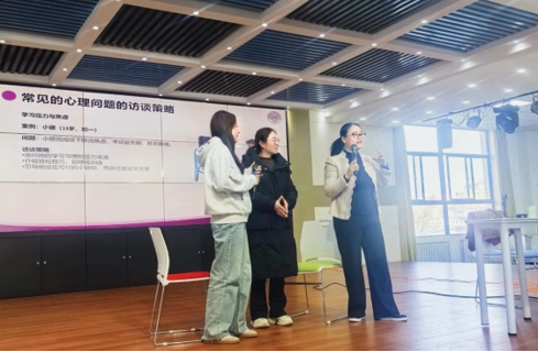 培训内容聚焦中小学生心理健康的综合知识,以及心理咨询技巧与危机干预方法。王崇颖教授通过案例剖析、互动游戏与现场答疑,系统讲解了学生心理问题的精准识别与干预策略,并强调家校社协同育人的重要性。参训教师纷纷表示,将学以致用,发挥专业引领,深化责任意识,致力于构建科学化、系统化的心理健康教育体系。
