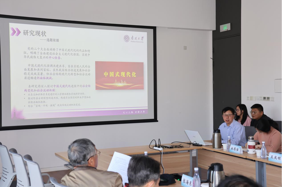 重大项目首席专家张文宏教授汇报了该项目的研究目标、研究内容和研究思路。课题聚焦的核心问题是在中国式现代化社会结构转型进程中,阶层结构与社会流动呈现的新型特征、演进趋势、影响因素、作用路径及生成机制。研究重点为中国社会结构变迁与社会流动体系,重点剖析现代化进程中社会结构转型机制、社会流动趋势演变及社会流动机制变化。