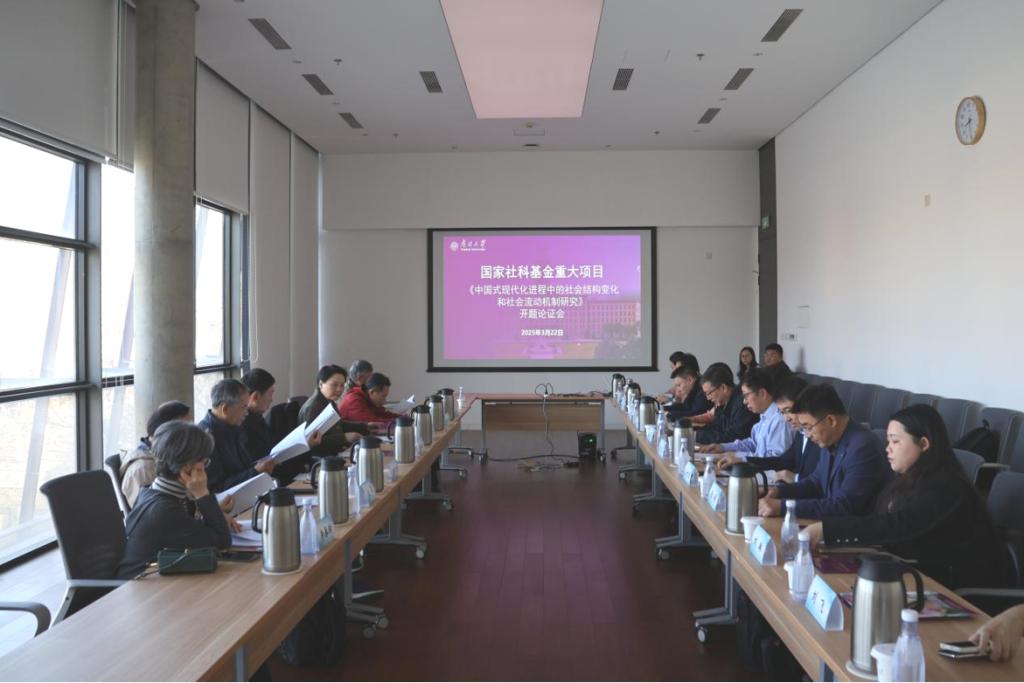 在八里台校区举办国家社科基金重大项目《中国式现代化进程中的社会结构变化与社会流动机制研究》开题论证会。中国社会科学院学部委员、国家一级教授李培林担任专家组组长,上海大学伟长学者特级岗教授李友梅,中国人民大学污漫