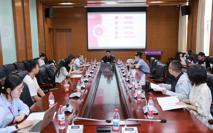 王庆明教授主持。汇报内容涵盖城市择业流向、高学历技能就业、面子文化影响、职业获得感与实习差异。哈尔滨工程大学赵岩副教授与东南大学人文学院社会学系叶茂鑫副教授从研究方法与社会资本分析等方面进行点评。