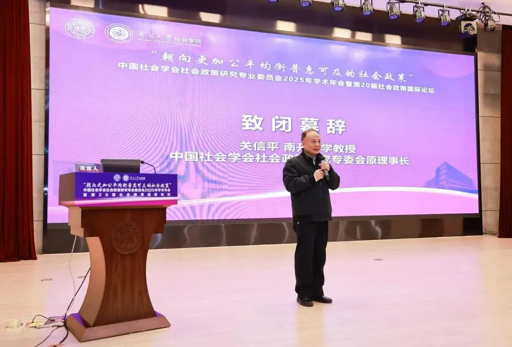 社会建设与管理研究院院长关信平致闭幕辞。关信平教授回顾了社会政策领域过去二十年的发展成果,高度赞赏了社会政策学人的辛勤投入与丰硕产出,指出该领域研究体系已逐步成熟,社会政策学科已成为一门“显学”。但新时期的社会政策研究仍面临新挑战,仍需持续关注并积极回应。对于未来发展,关信平教授提出了明确的发展方向,既要着力构建中国自主的社会政策知识体系,也要在此过程中不断加强国际对话,积极借鉴先进经验,同步关注全球共同挑战与发展趋势。