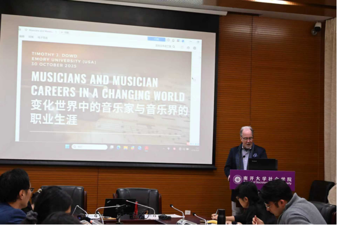 第三项活动是由Dowd教授主讲,题目为“变化世界中的音乐家与音乐界的职业生涯(Musicians and Music Careers in a Changing World)”的讲座,于10月30日中午12:10-13:50在污漫