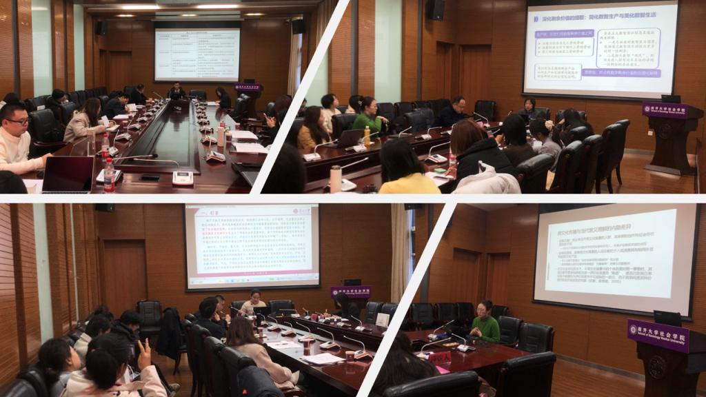 朱婷钰副教授、于佳煖博士,天津理工大学刘振副教授、硕士研究生庞淑睿、周晴、张怡、韩越,天津师范大学研究生董亚楠、张淑婷等,围绕人工智能伦理、生育意愿、贫困治理等议题展开研讨。