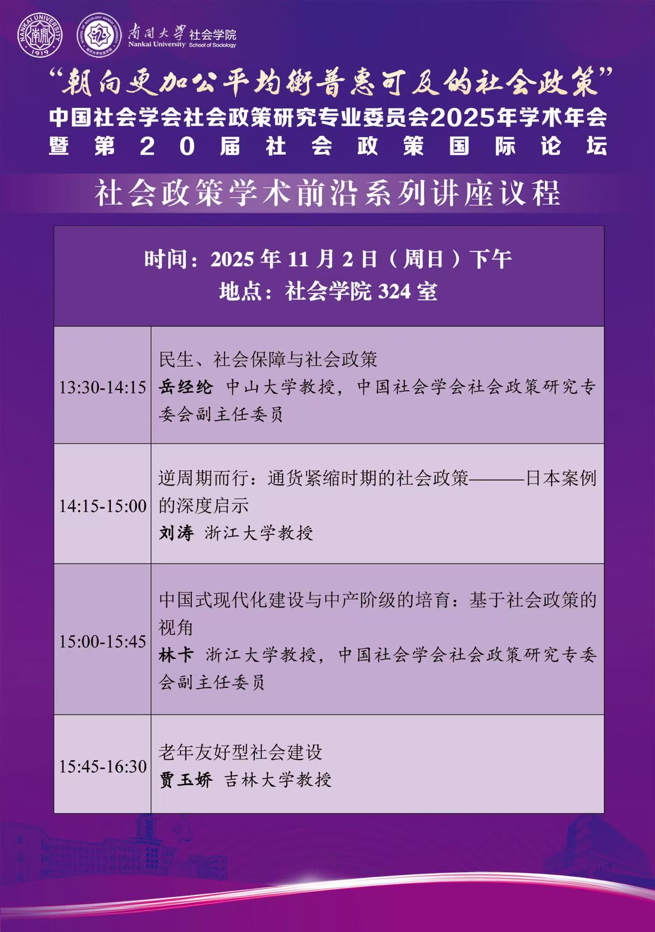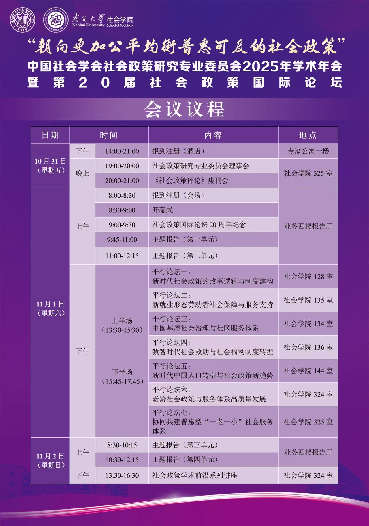 中国社会学会社会政策研究专业委员会2025年学术年会暨第20届社会政策国际论坛