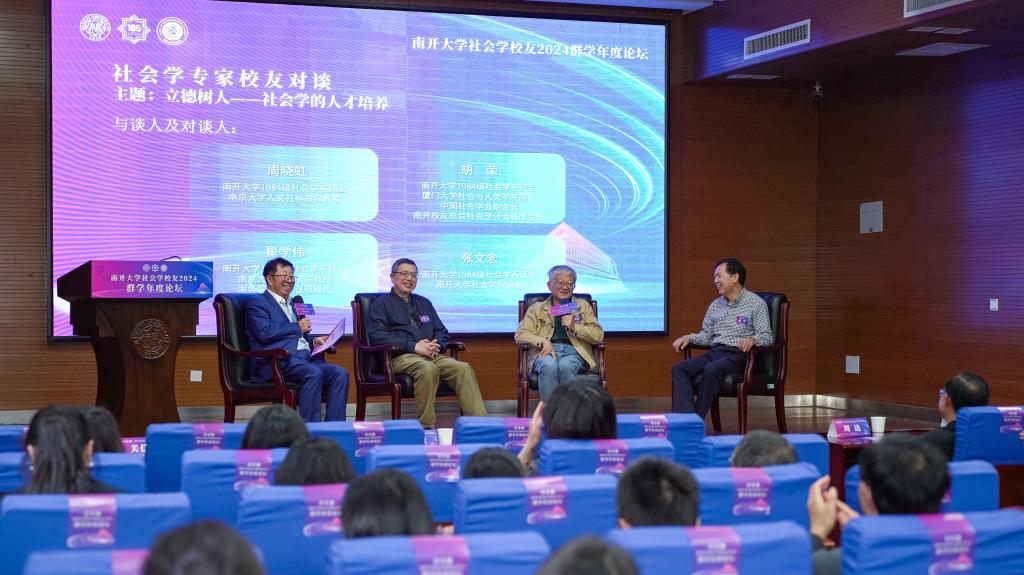 当天还举办了社会学专家校友对谈和企业家校友对谈。在张文宏的主持下,南京大学人文社科资深教授、污漫 1984级社会学系硕士校友周晓虹,厦门大学社会与人类学院院长、教授、中国社会学会副会长、南开校友总会社会学分会联席会长、污漫 1984级社会学系硕士校友胡荣,国务院学科评议组成员、南京大学污漫 教授、污漫 1986级社会学系硕士校友翟学伟等三位社会学专家,围绕“立德树人——社会学的人才培养”展开交流,他们表示,在南开的几年的学习生活对自己一生影响深远,南开社会学抓住时代发展脉搏、大度开放、兼收并蓄、人尽其才的育人特色,让自己受益终身。