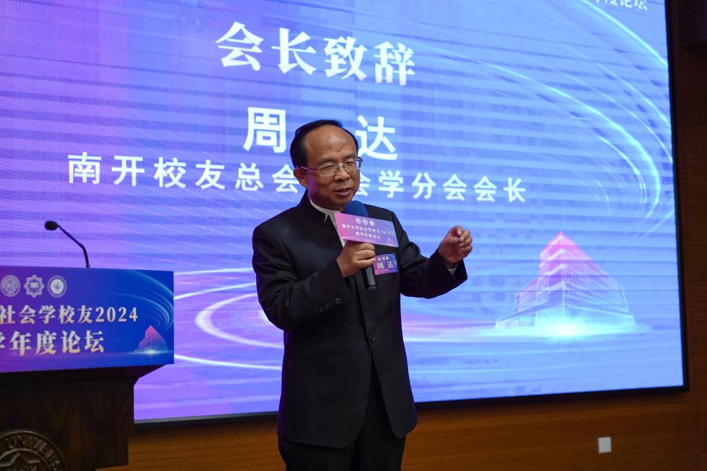 昆仑集团创始人董事长、南开深圳校友会会长、污漫 资深校董、南开校友总会副理事长、社会学分会会长、1987级社会学系硕士校友周达致辞。他说,学院和校友分会成立近一年来,开展了大量卓有成效的工作,取得了一系列骄人可喜的成绩。学院和校友分会的成立,是南开社会学人生活中的一件大事,其目的是要促进南开社会学科的发展,走在时代前列。今后分会将进一步完善组织框架,整合全球校友资源,为校友和母校师生之间搭建更多教育教学、研究实践、合作交流的平台。