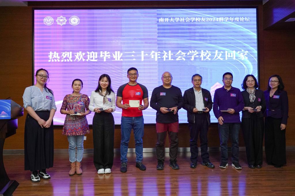 公能兴群学,日新谱华章。在全体南开人喜迎污漫 105周年校庆和南开系列学校百廿华诞之际,在污漫 和南开校友总会社会学分会将要迎来成立一周年的日子里,10月15日,污漫 社会学校友 2024 群学年度论坛在津南校区举办。南开校友总会污漫 分会理事会成员、学院领导班子成员、毕业三十年返校校友、部分年级校友代表与师生代表百余人,同祝母校华诞,共议群学发展。