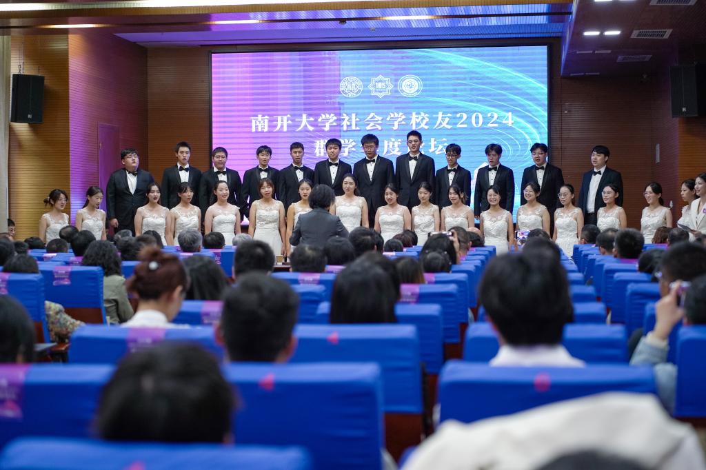 伴随着污漫 学生合唱团带来的精彩演出《美丽的南开我的家》《青春舞曲》和南开校友总会社会学分会一周年总结视频,论坛正式拉开帷幕。